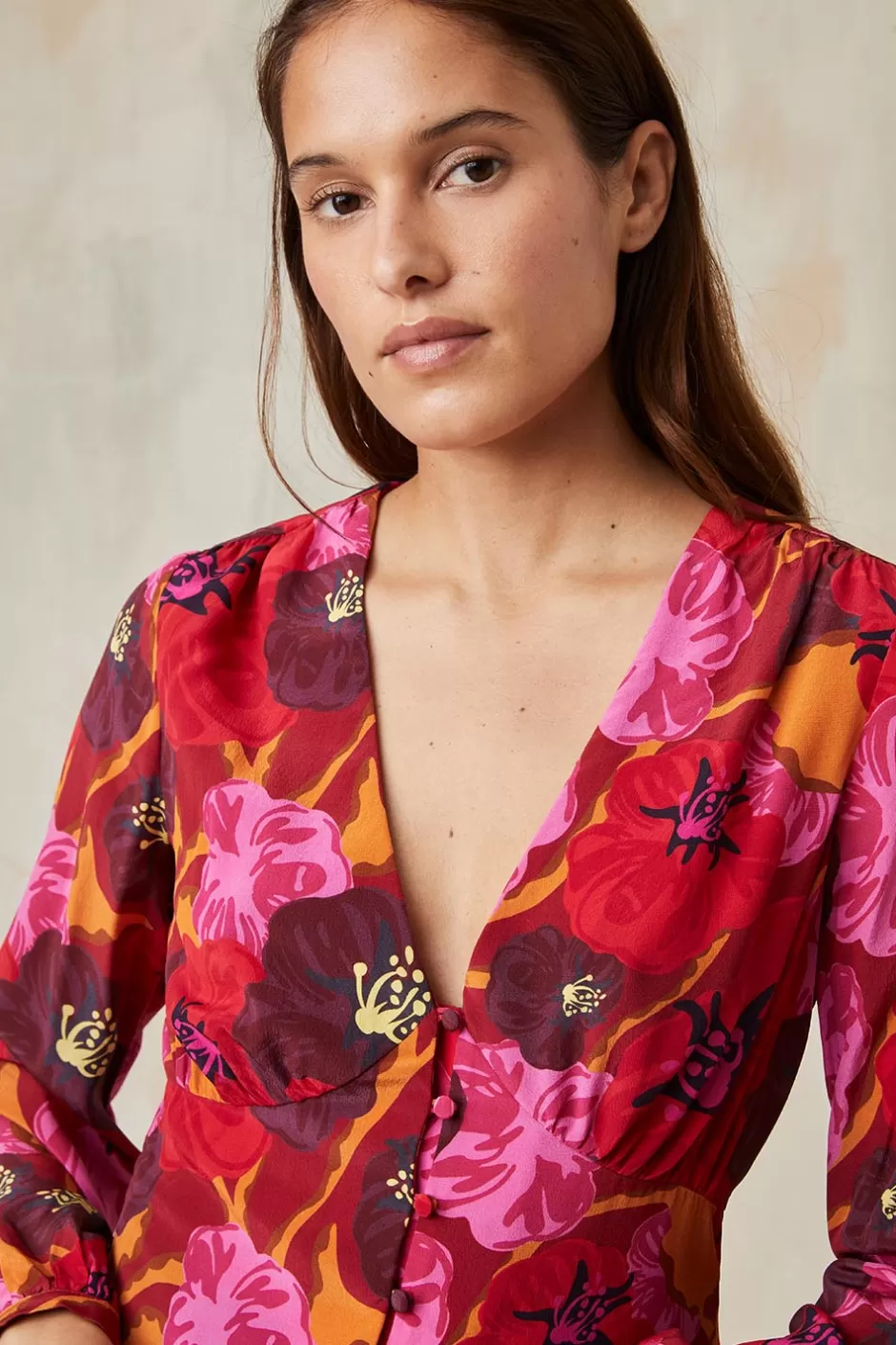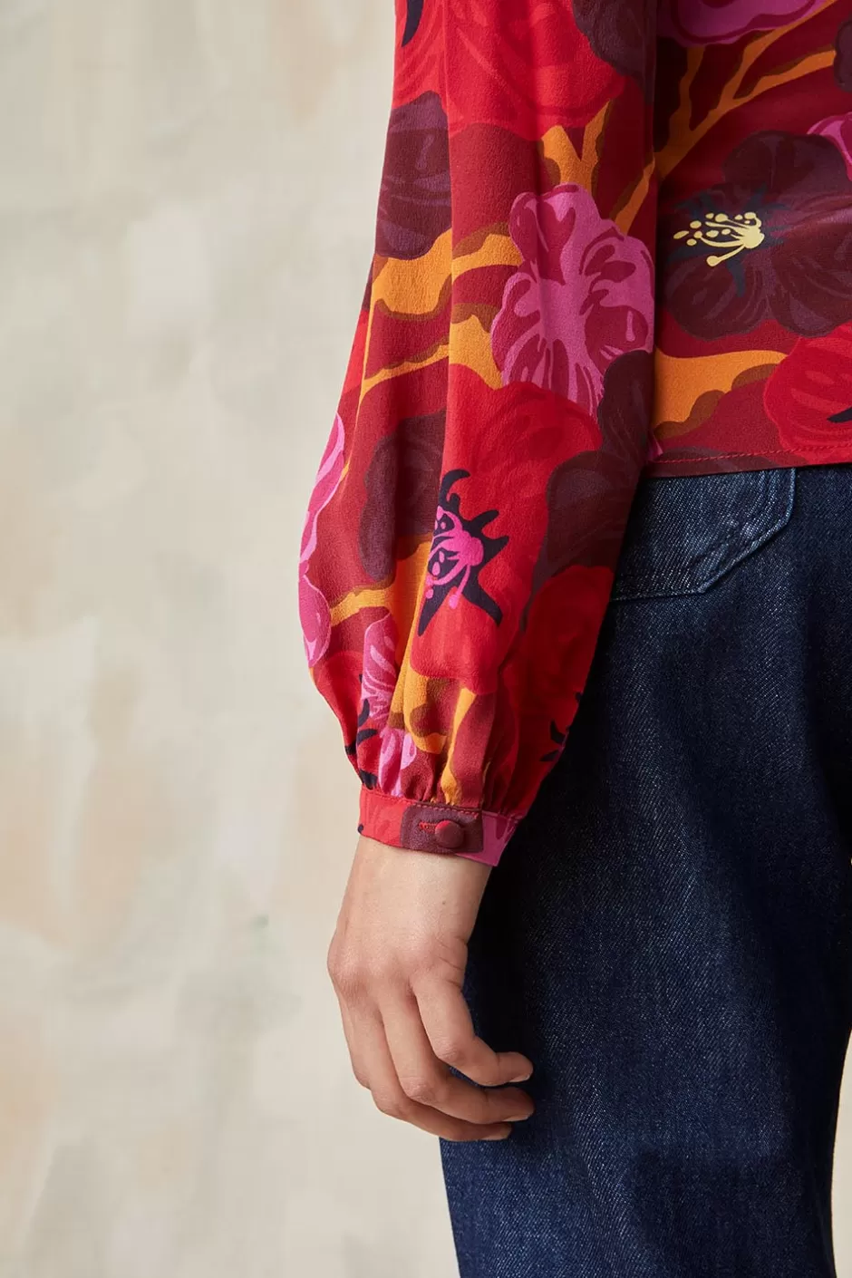 Nous avons choisi cette soie à l’effet crêpé pour son drapé fluide et sa texture légère.