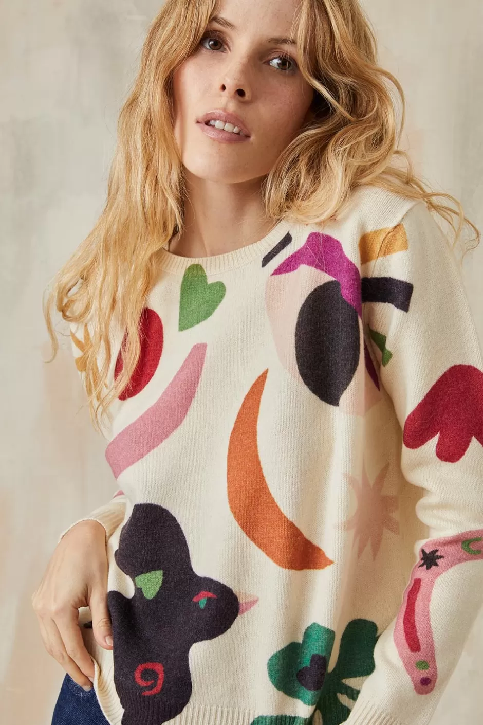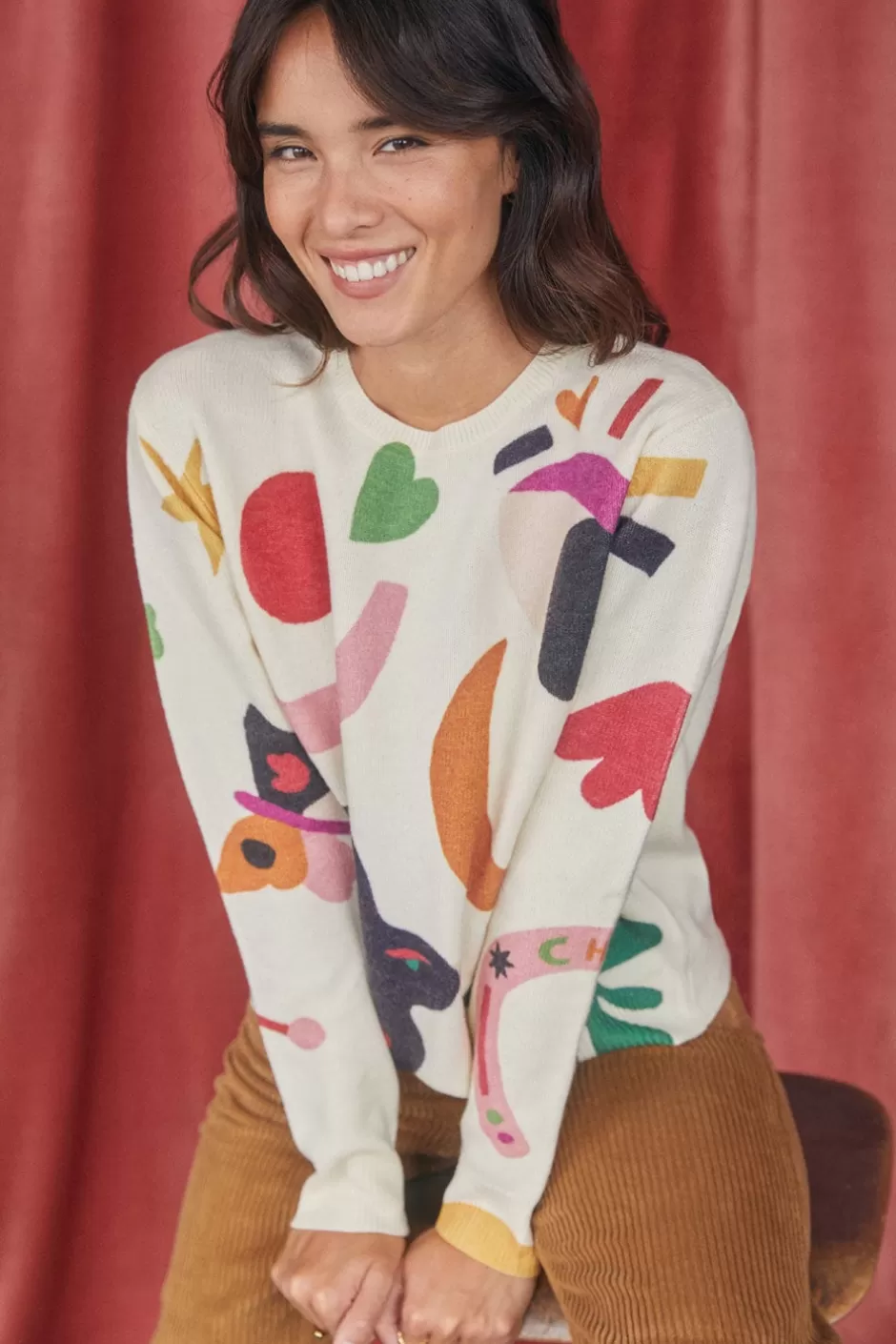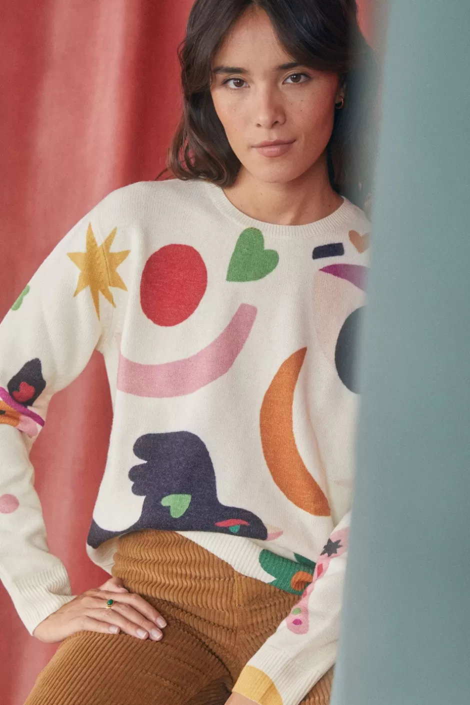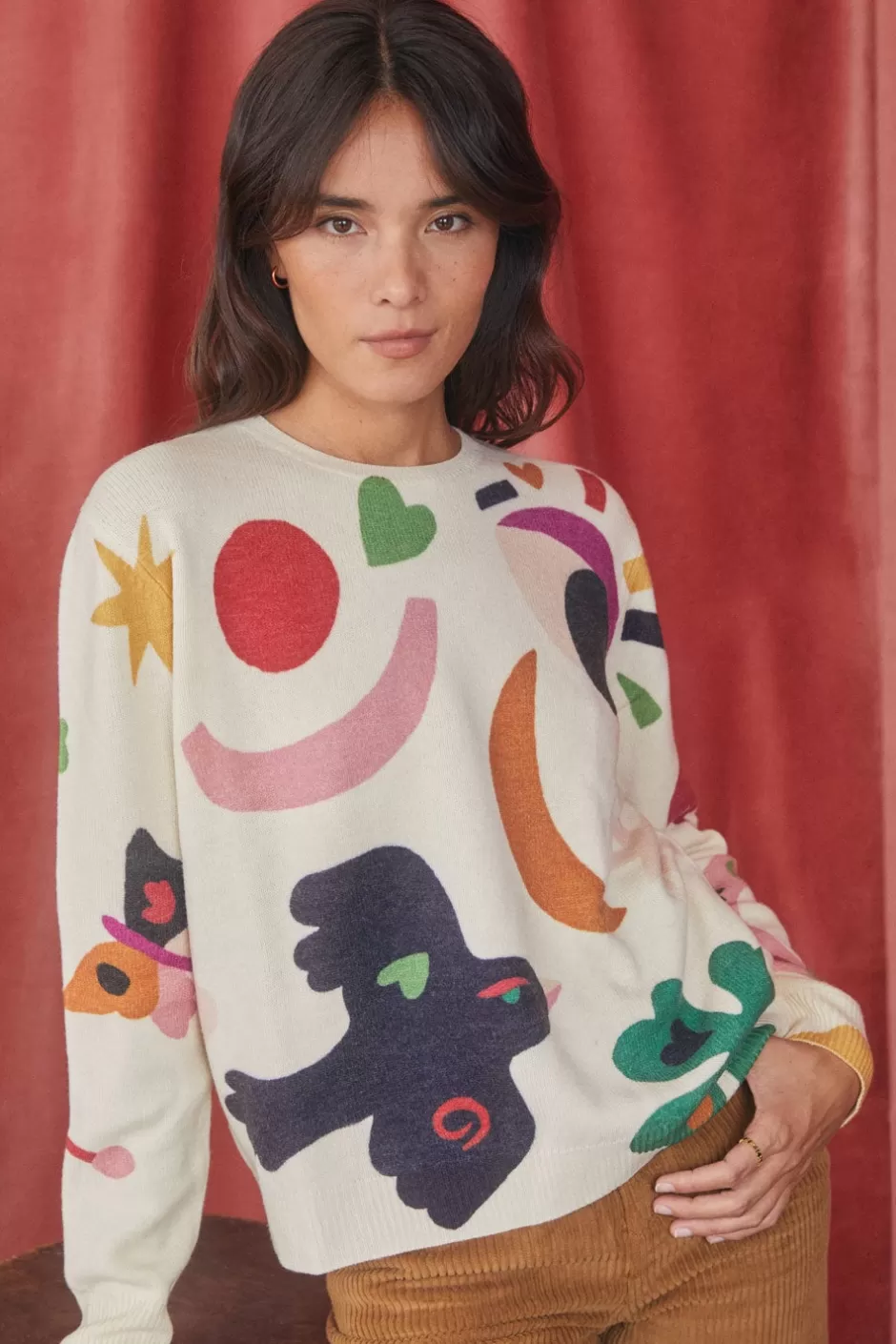 - • Un pull en laine imprimé