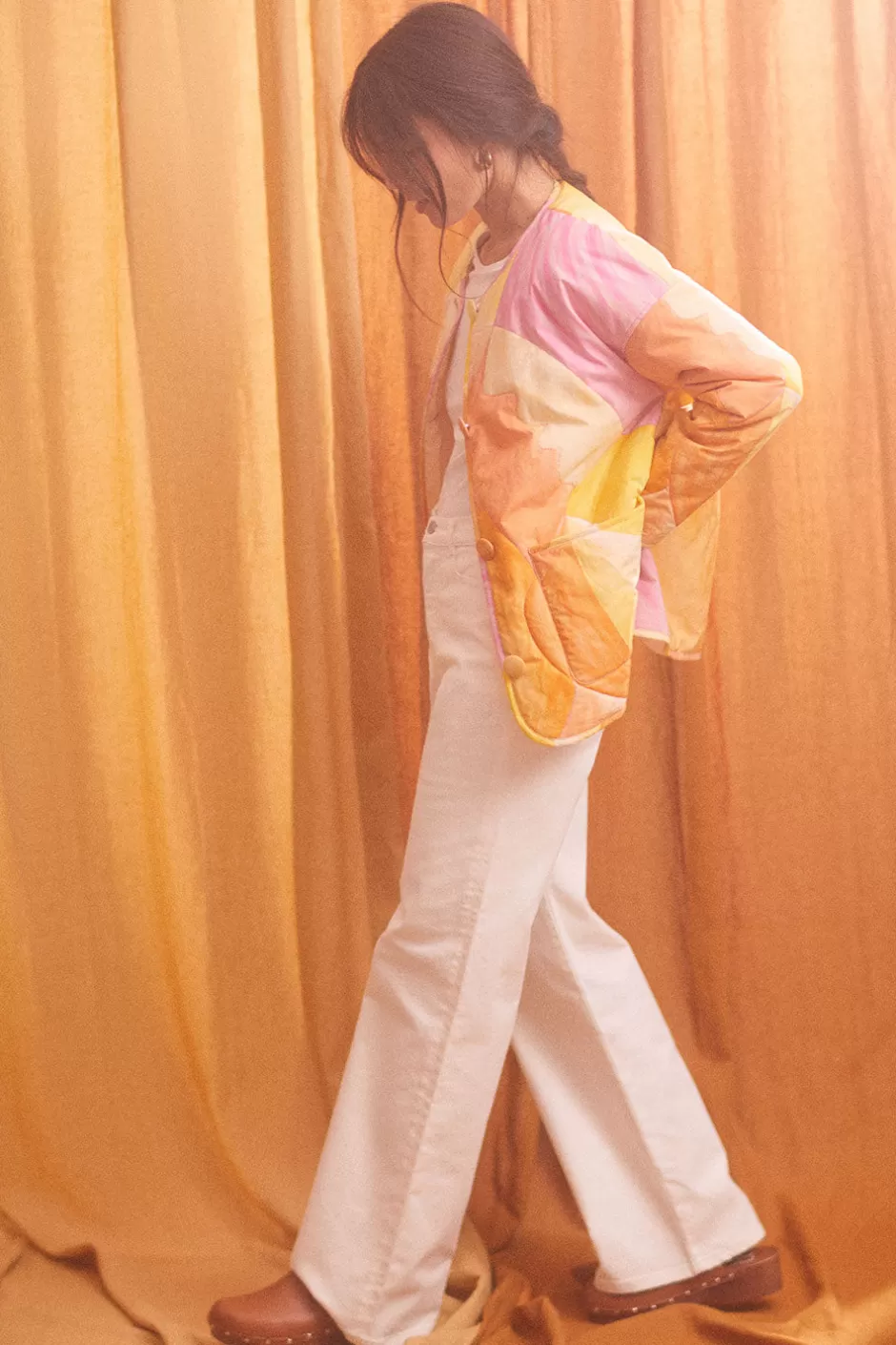 Nous avons sélectionné cette viscose pour son aspect mat, et son toucher fluide et soyeux.